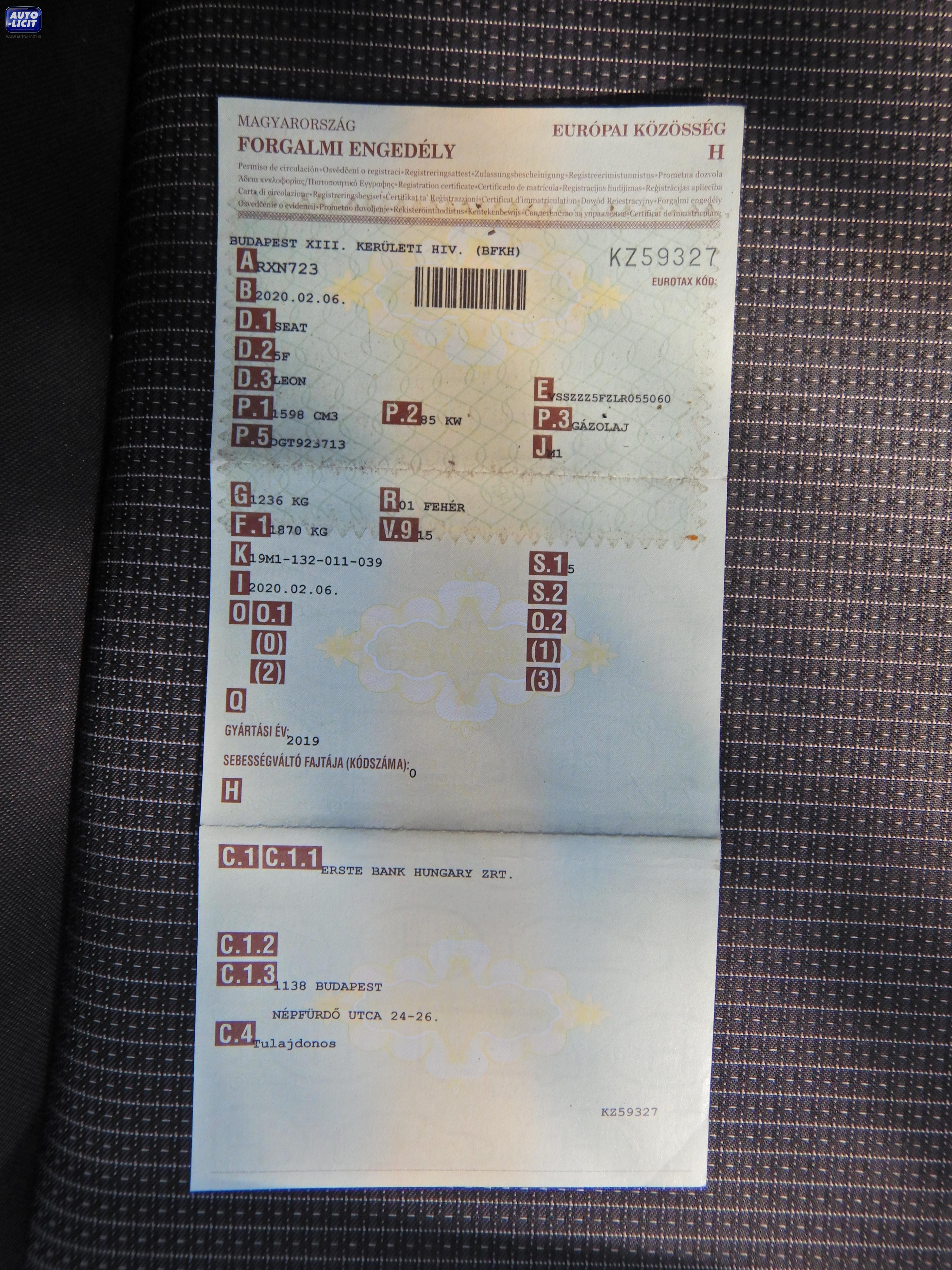 Forg. eng. száma: KZ59327 Törzskönyv száma: