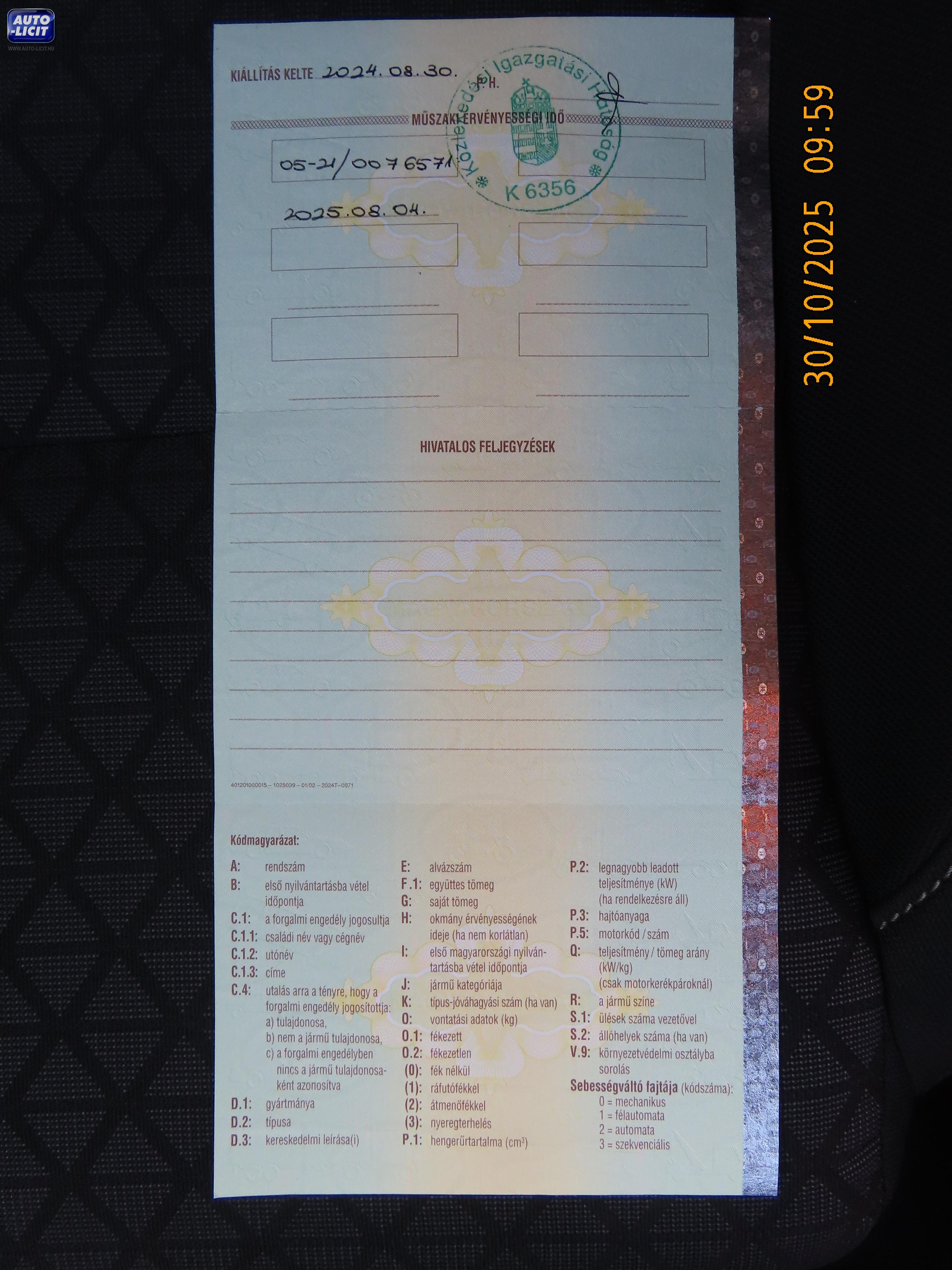 A jármű műszaki és esztétikai állapotának felmérése során a szemle keretében korszerű rétegvastagság mérő berendezés kerül alkalmazásra, a jármű külső és belső állapota, látható sérülései digitális fényképfelvételeken vannak rögzítve.