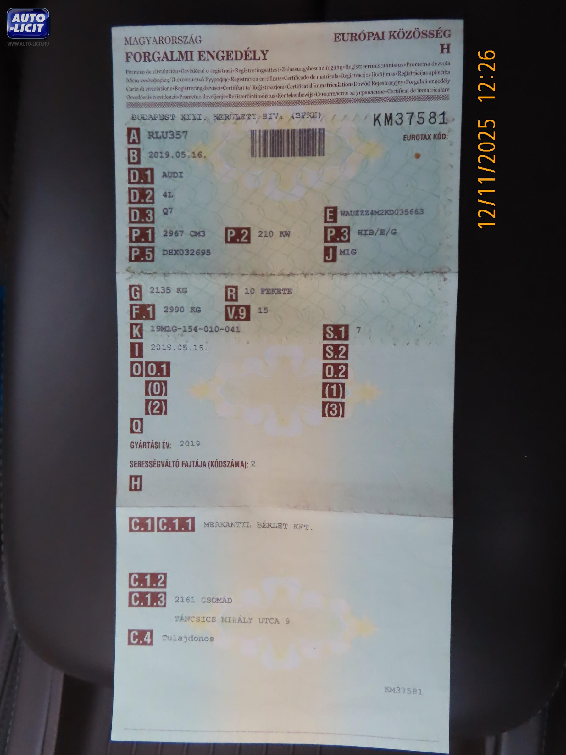 Első hazai forgalomba helyezés: |