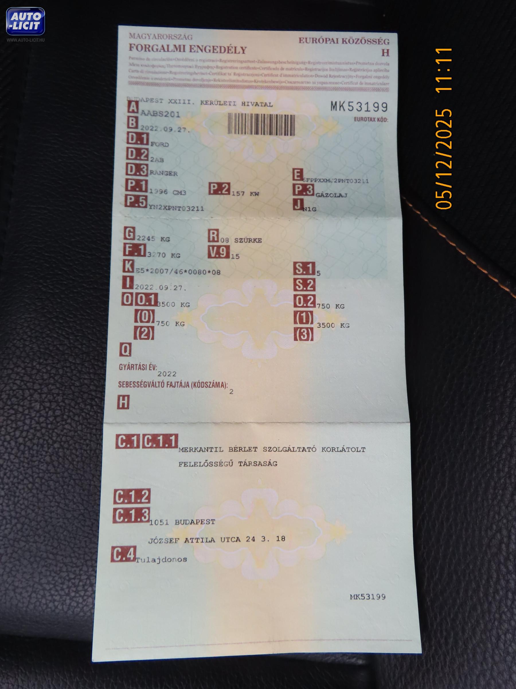 Első hazai forgalomba helyezés: |