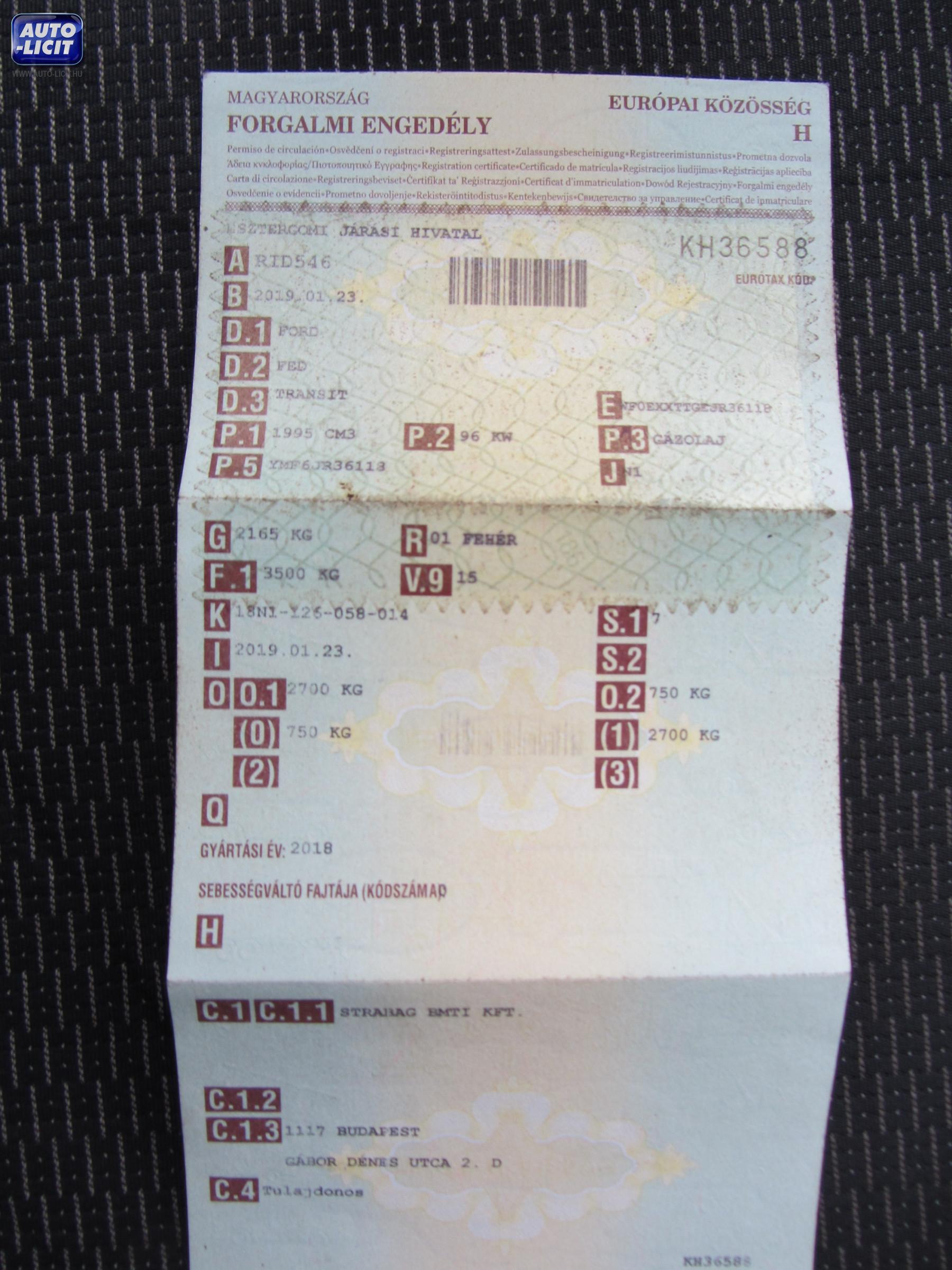 Első forgalomba helyezés: |