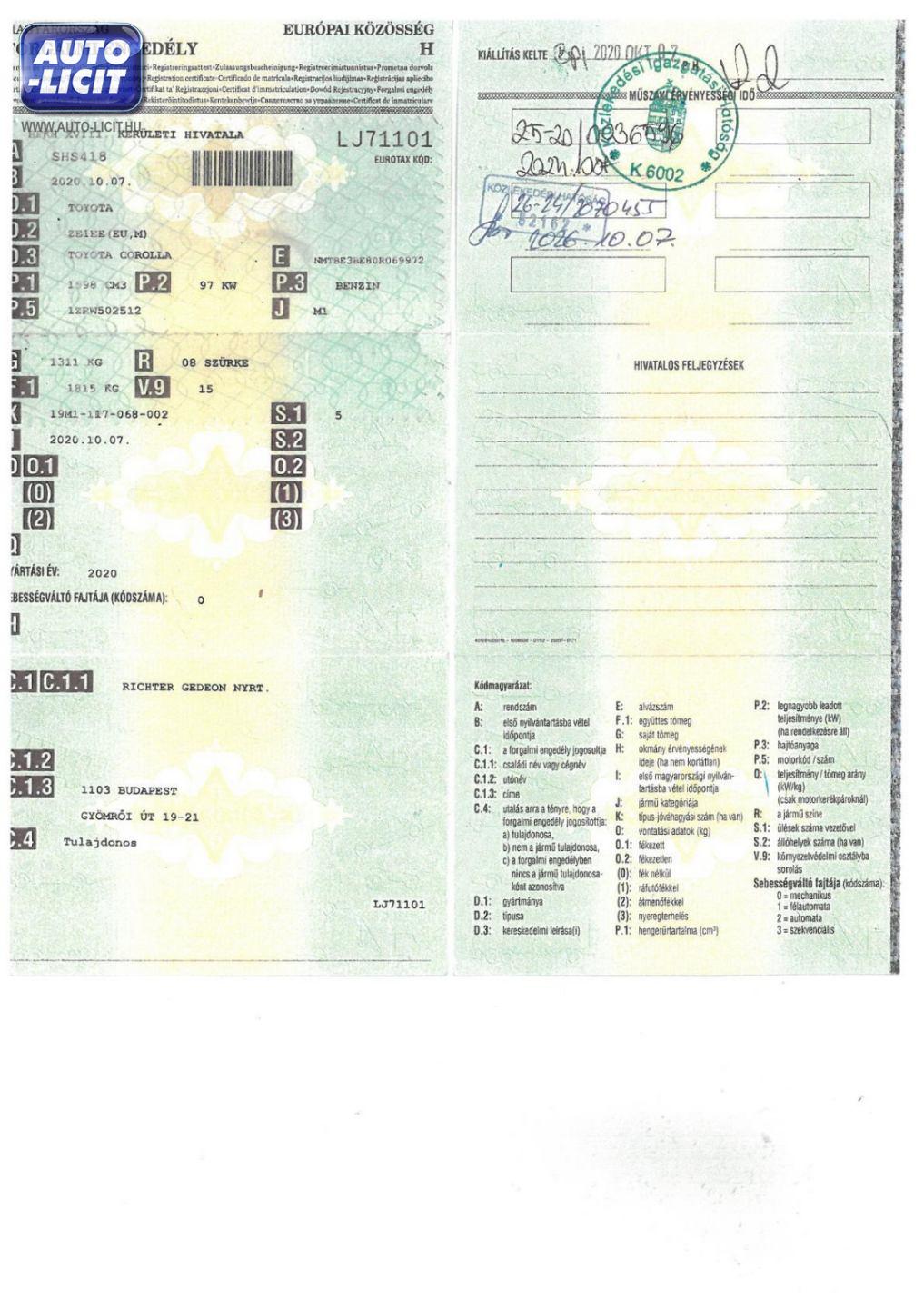 Első hazai forgalomba helyezés: |