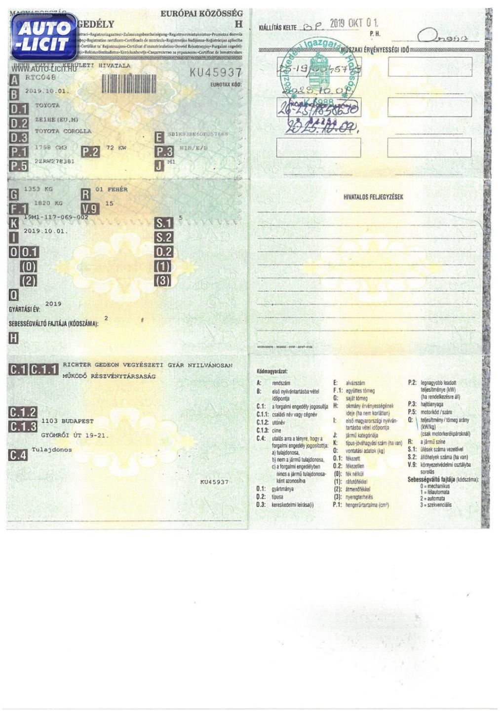 Első hazai forgalomba helyezés: |