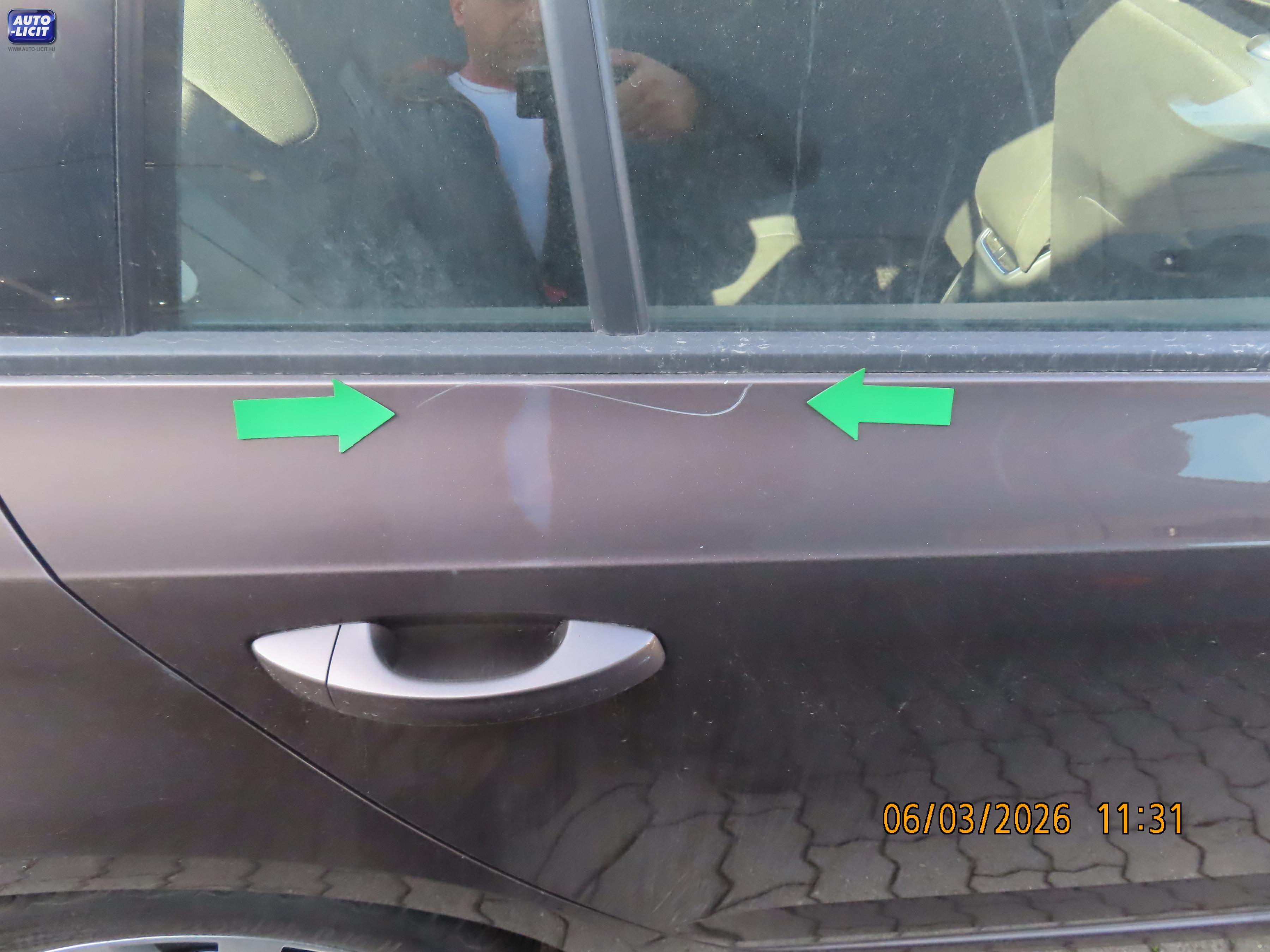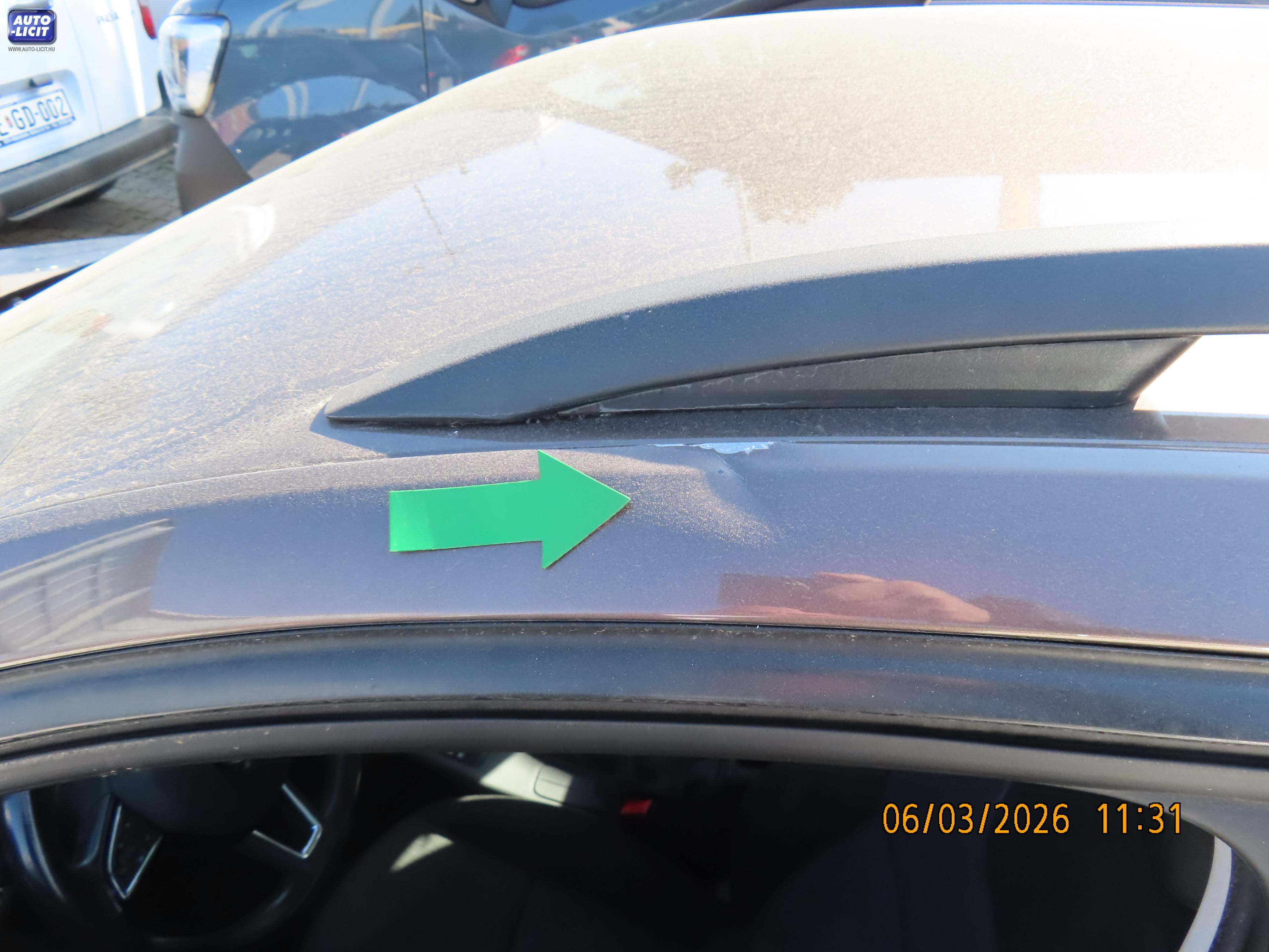 lásd megjegyzés (Első vészhárítón kis karcok fénysérülések jobb szélén kis repedés, bal oldali A oszlopon apró fénysérülés, bal oldali tetőkereten horpadás fénysérült, bal hátsó ajtón kis karcok, bal hátsó sárvédőn kis karcok, hátsó lökhárítón karcok fénysérülések, jobb hátsó ajtón karc fénysérült, jobb oldali küszöbön kis horpadás, jobb első ajtó élén apró fénysérülés.) |