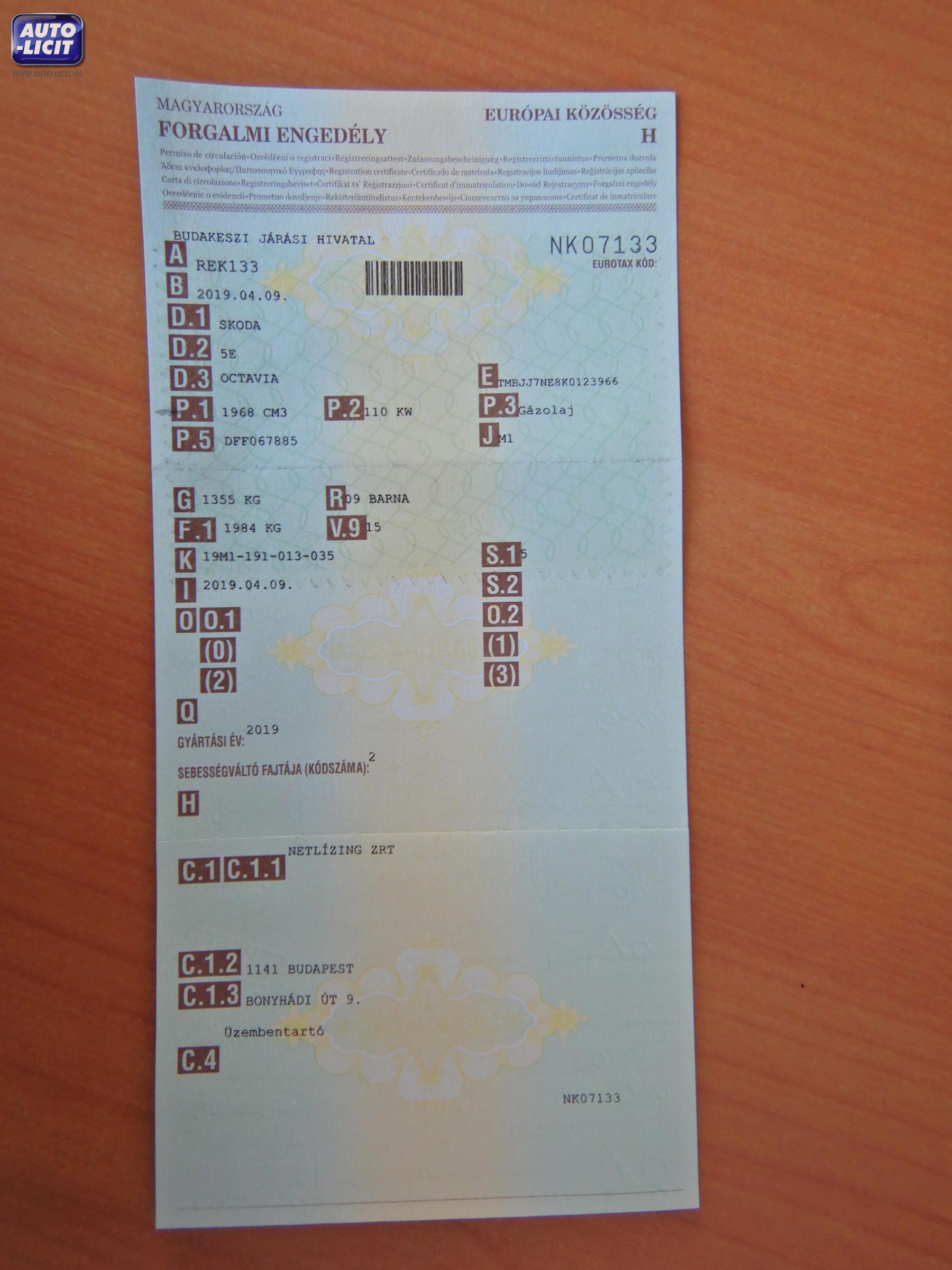 Első hazai forgalomba helyezés: |