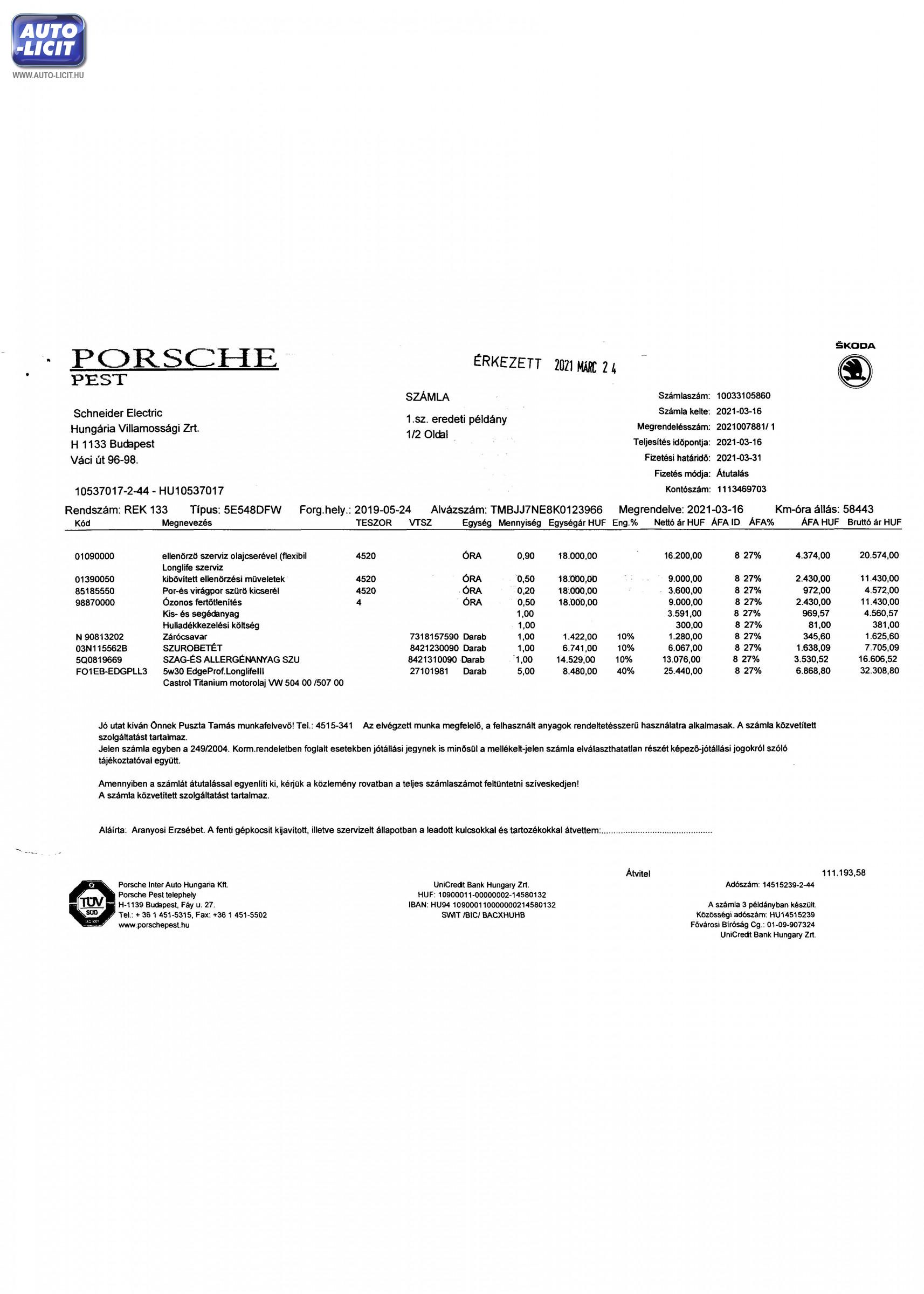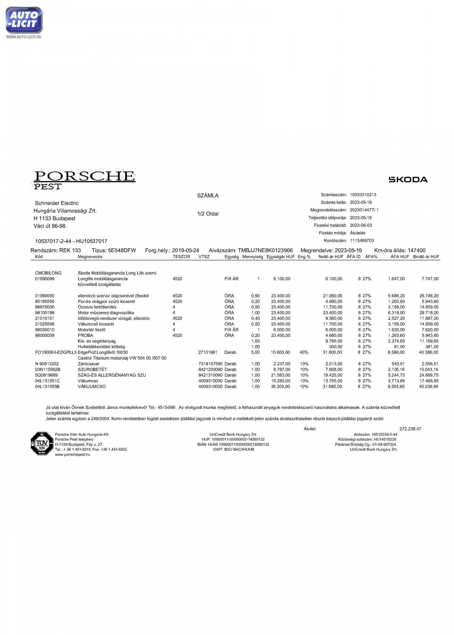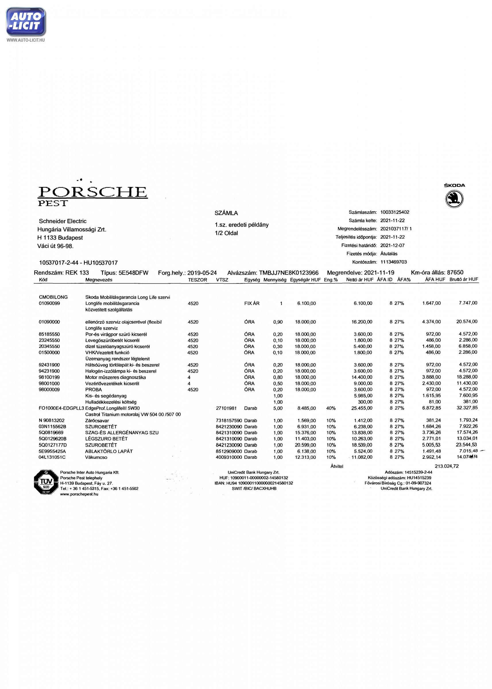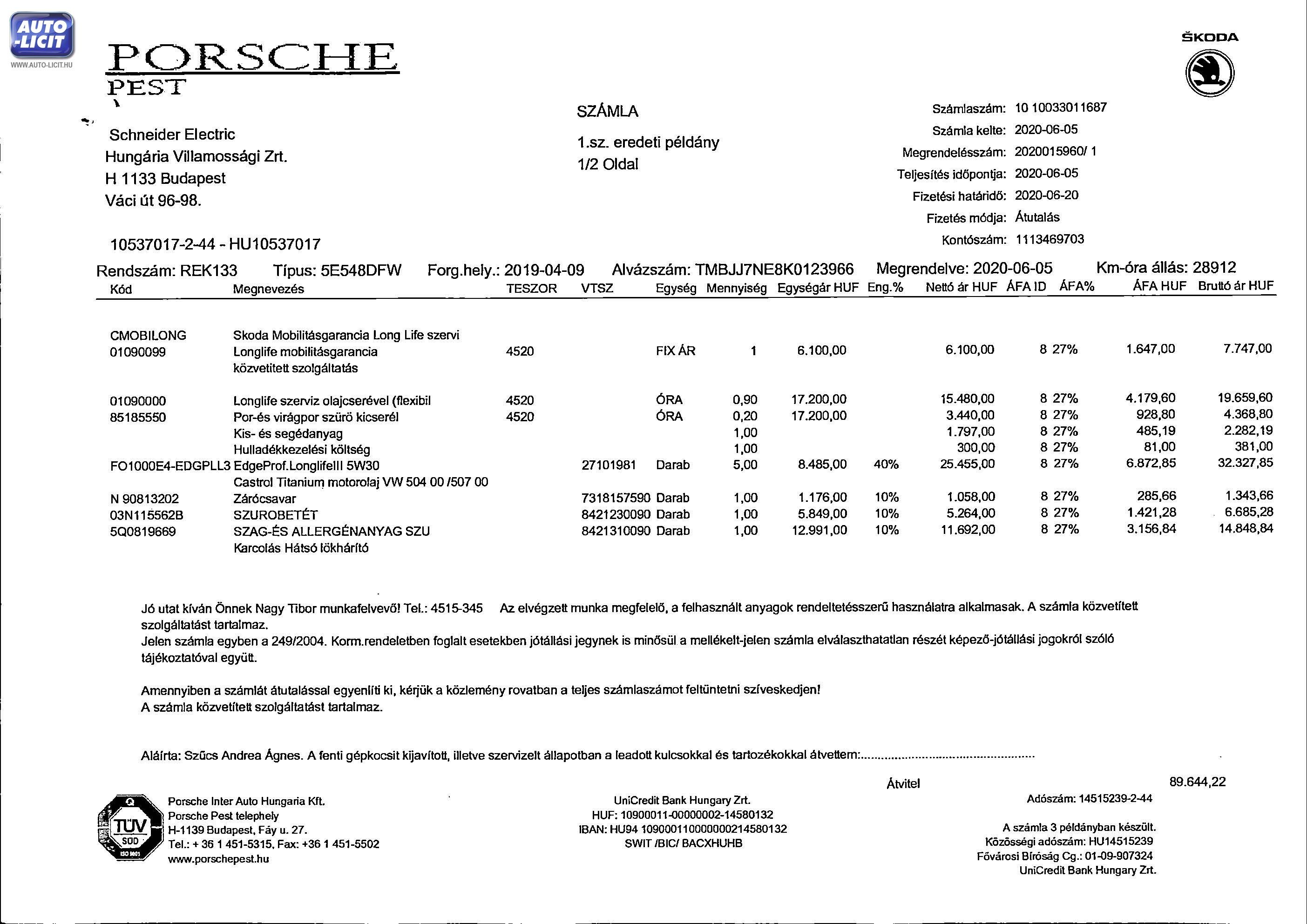 A szakvélemény külön kitér a gépjármű adatainak a vizsgálatára, így ellenőrzésre került a gépjármű forgalmi engedélyében szereplő adatok helyessége is a gépjármű valós vizsgálata során, mely vizsgálat azonban nem terjedhet ki az egyedi azonosítók teljes, külön eredetiség vizsgálat során megállapítható vizsgálatára.
