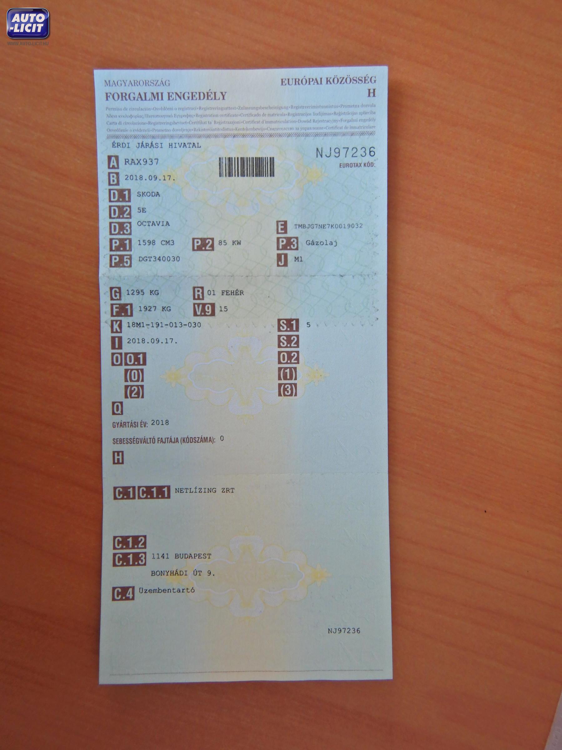 Forg. eng. száma: NJ97236 Törzskönyv száma: