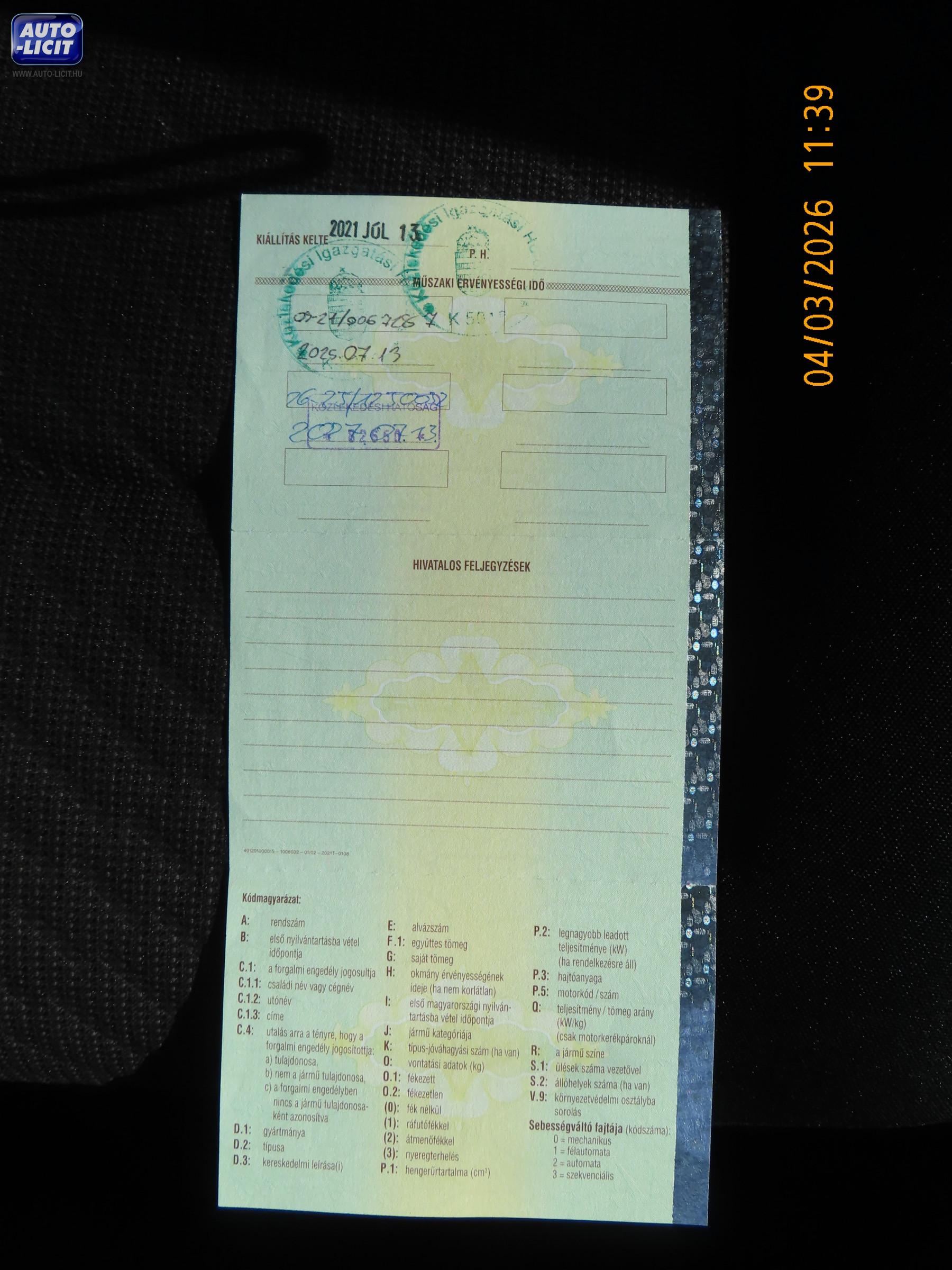 Első hazai forgalomba helyezés: |
