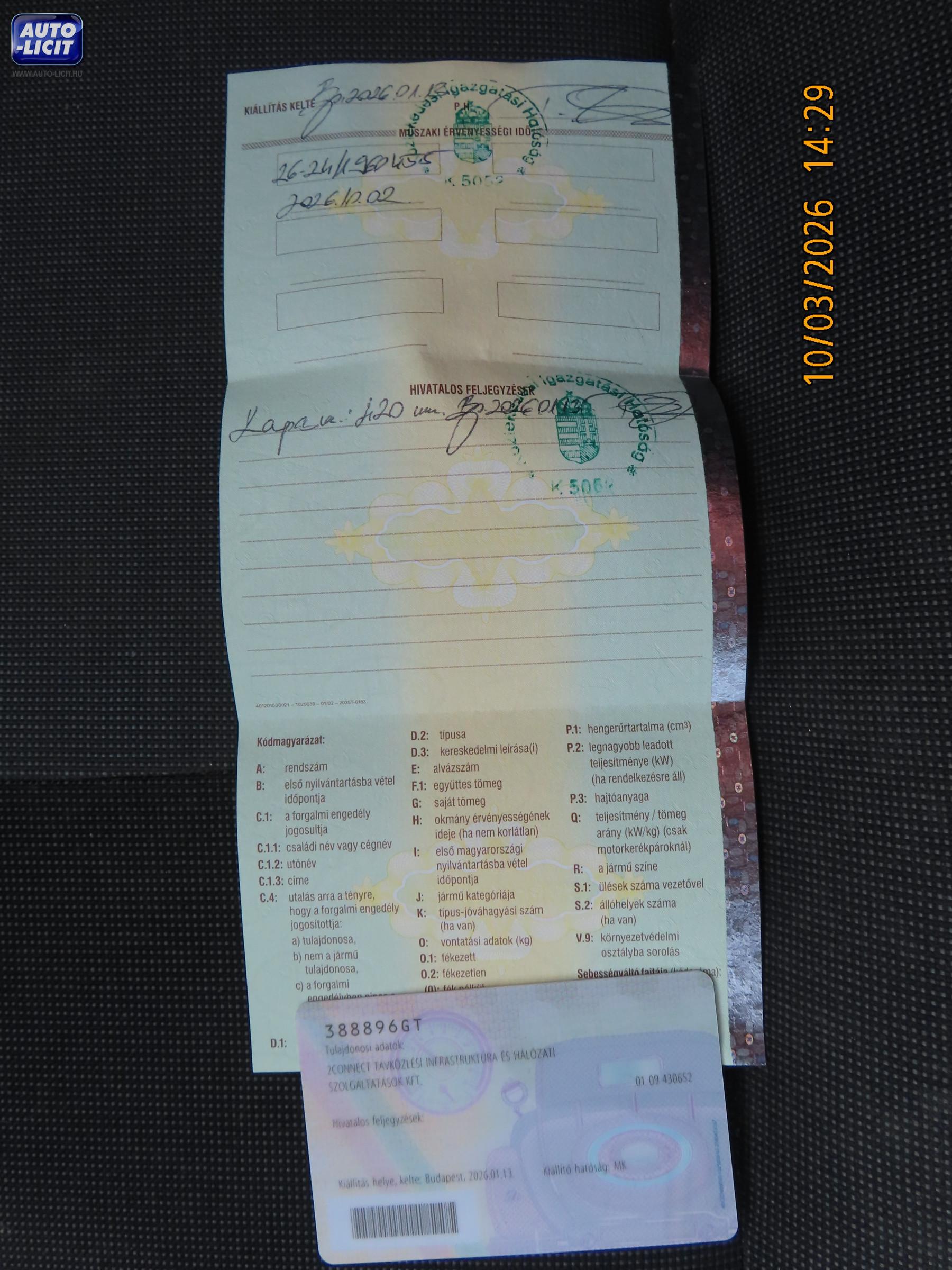 lásd megjegyzés (Motorháztetőn apró fénysérülések, első vészhárítón kis nyomás karcos fénysérült, bal első sárvédőn apró fénysérülés, bal oldali A oszlopon apró fénysérülés, bal oldali ajtón apró nyomás éle fénysérült, bal hátsó sárvédőn apró fénysérülés, hátsó lökhárítón kis karcok fénysérülések, jobb oldali ajtón apró nyomás, tetőn elől apró fénysérülések, dísztárcsák karcosak, hátsó kipufogódob erősen korrodált.) |