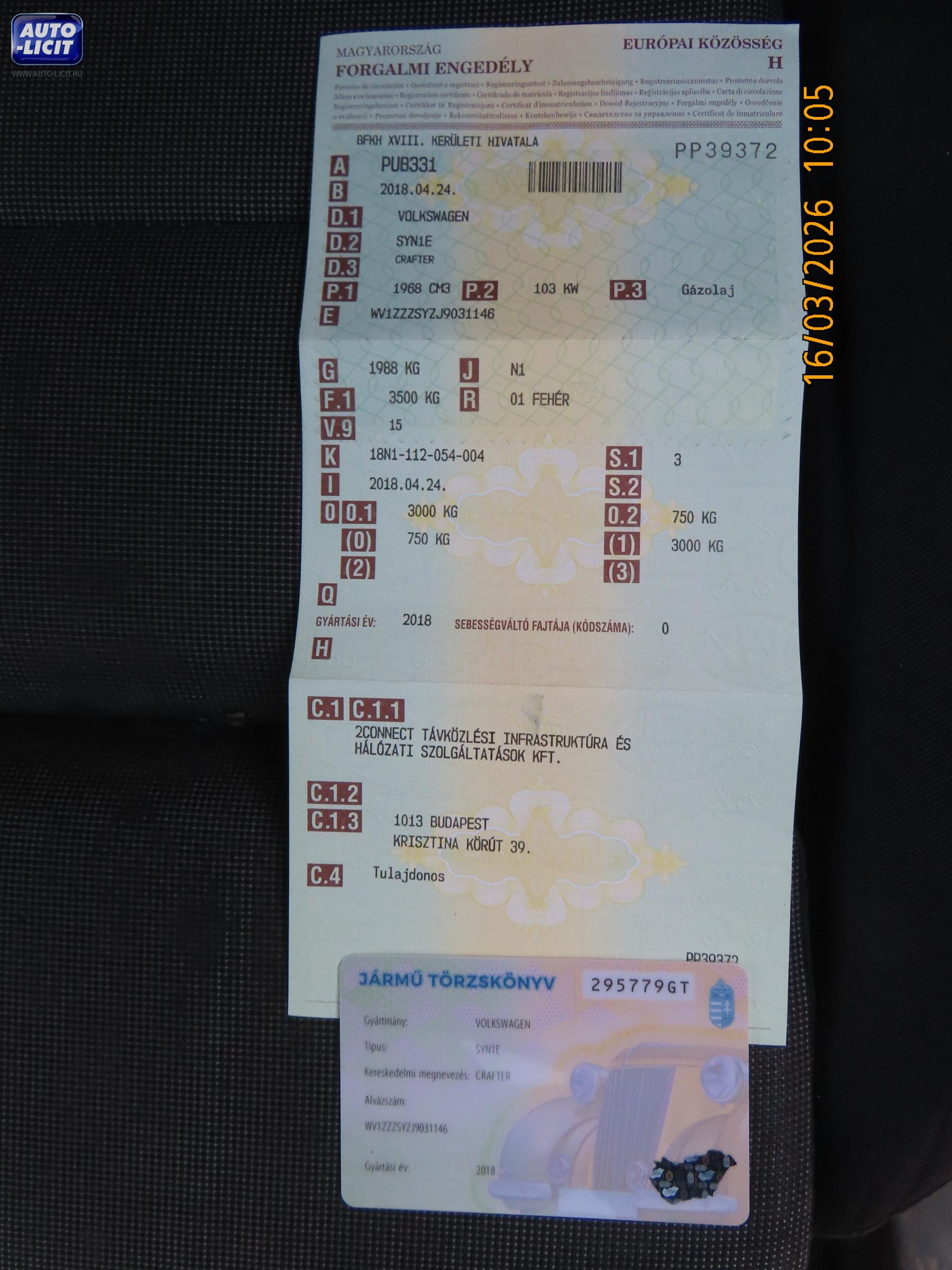 Alvázszám: WV1ZZZSYZJ9031146 Motorszám: