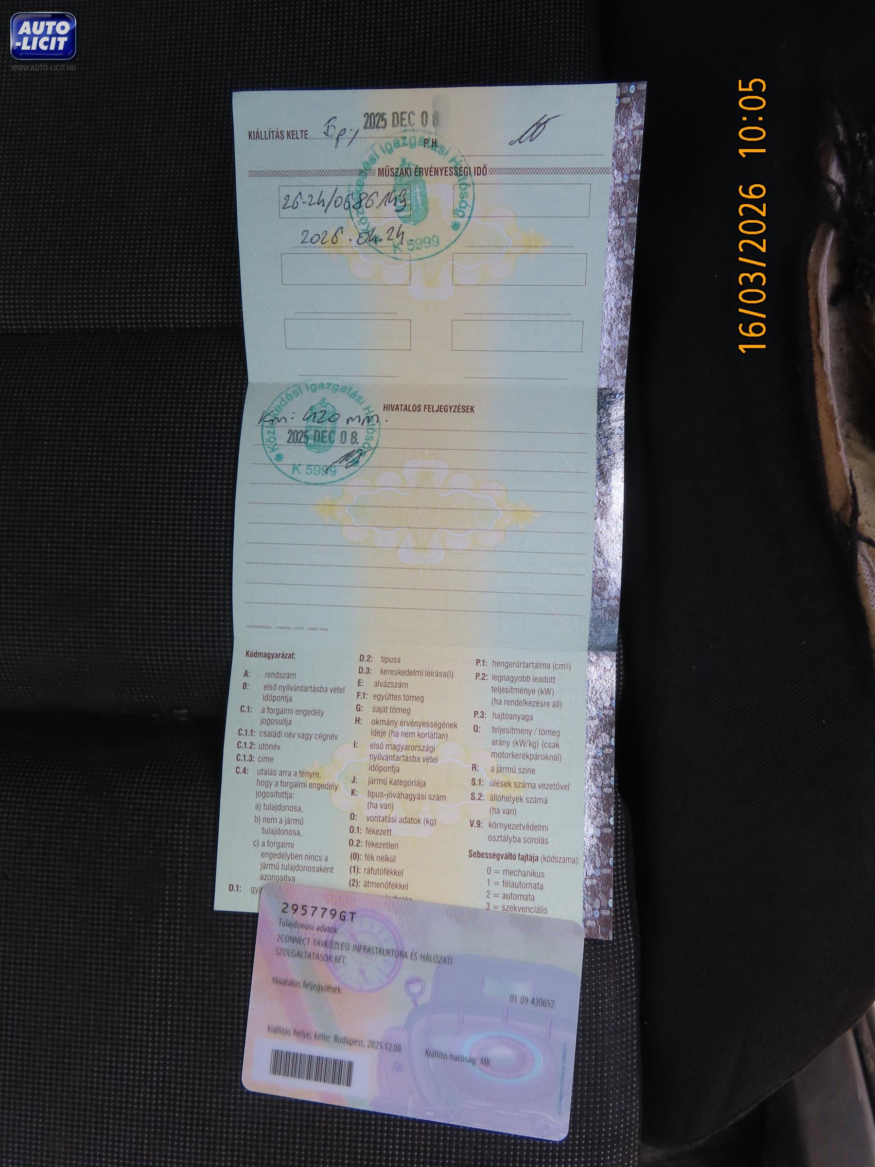 Műszaki érvényes: 2026.04.24 Első hazai forgalomba helyezés: 2018.04.24