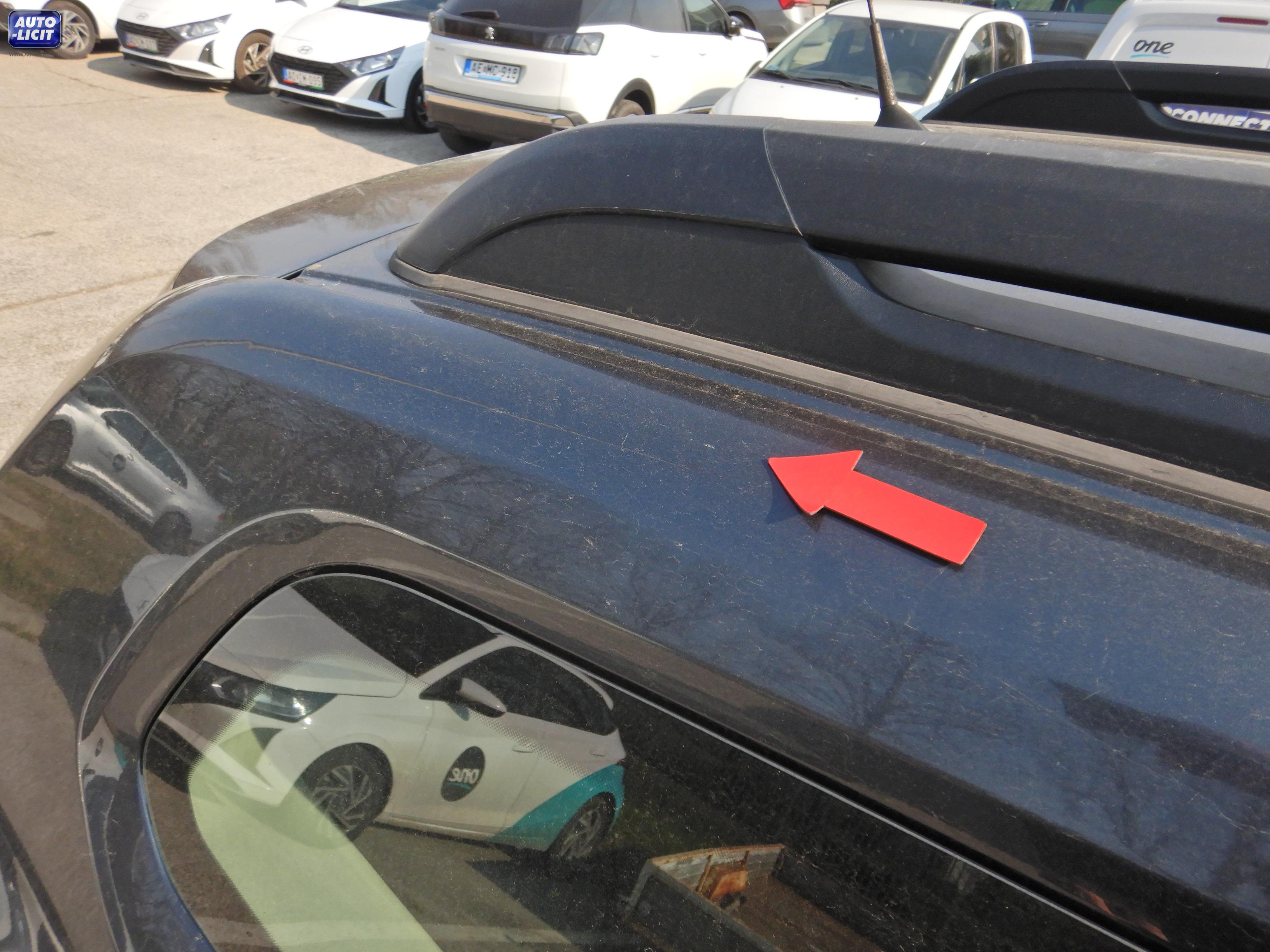 lásd megjegyzés (első vészhárítón sok apró fénysérülés, motorháztetőn sok apró fénysérülés, bal első ajtón horpadások, bal hátsó sárvédőíven horpadás, hátsó vészhárító törött, tetőn horpadás, jobb tükörház törött, karcok körbe ) |