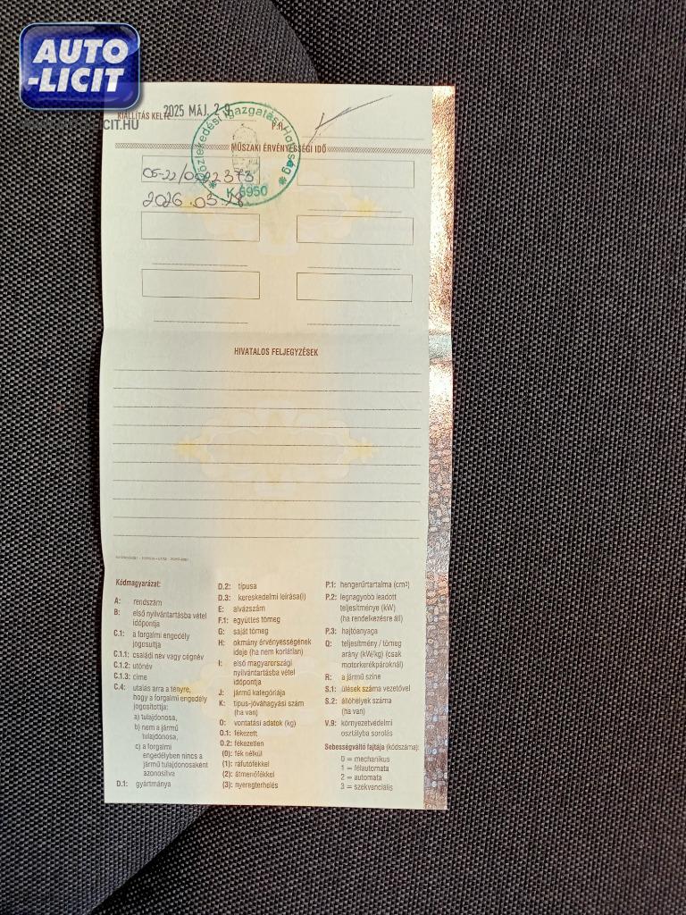 A jármű műszaki és esztétikai állapotának felmérése során a szemle keretében korszerű rétegvastagság mérő berendezés kerül alkalmazásra, a jármű külső és belső állapota, látható sérülései digitális fényképfelvételeken vannak rögzítve.