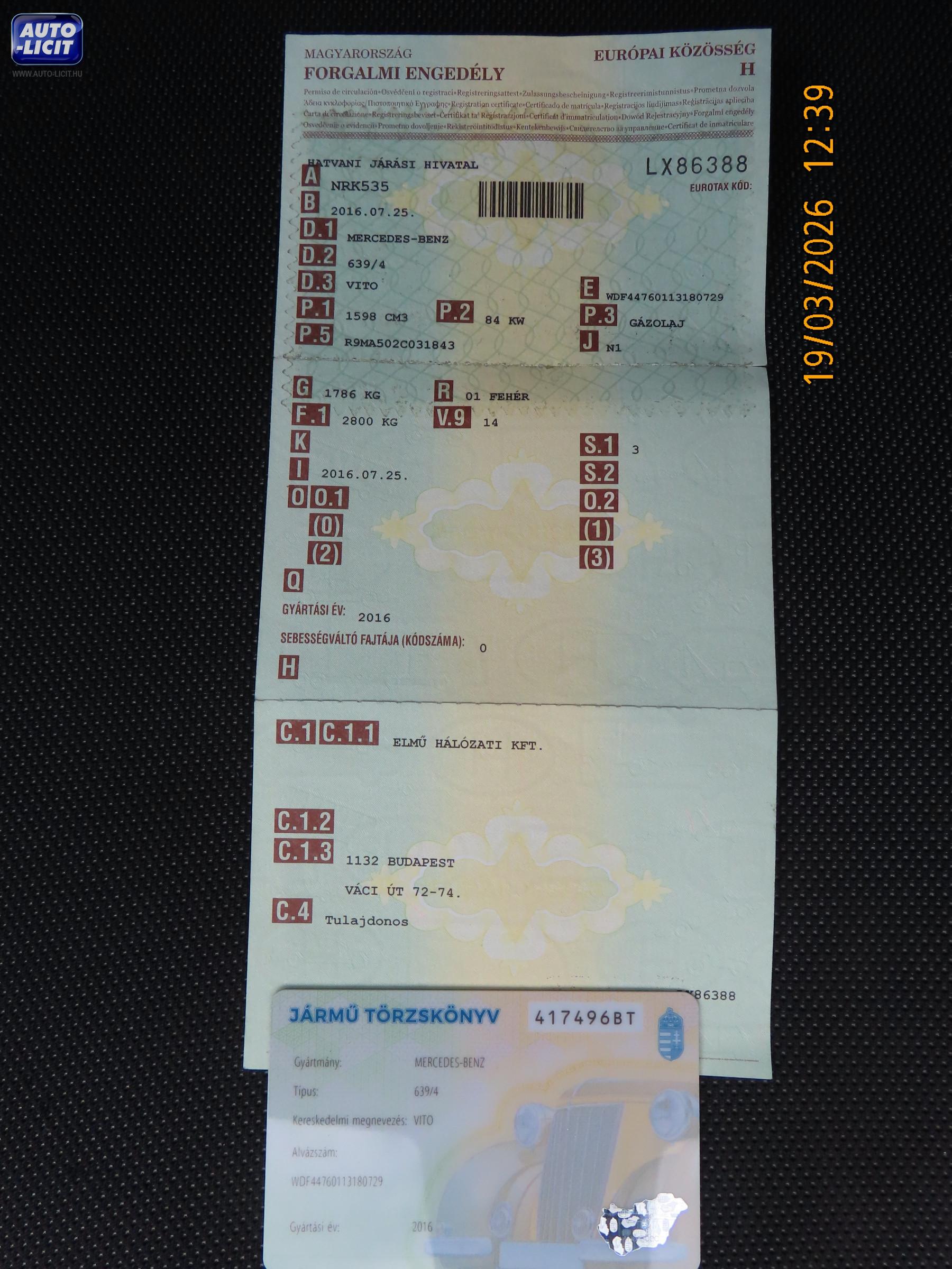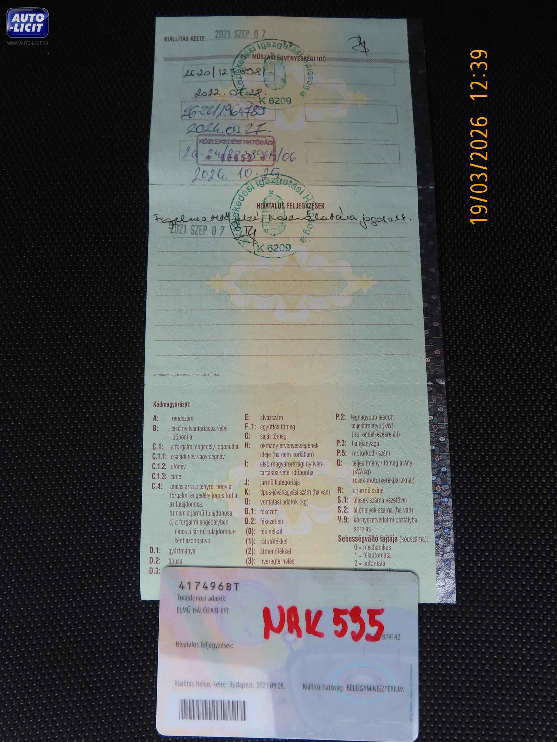 Forg. eng. száma: LX86388 Törzskönyv száma: 417496BT