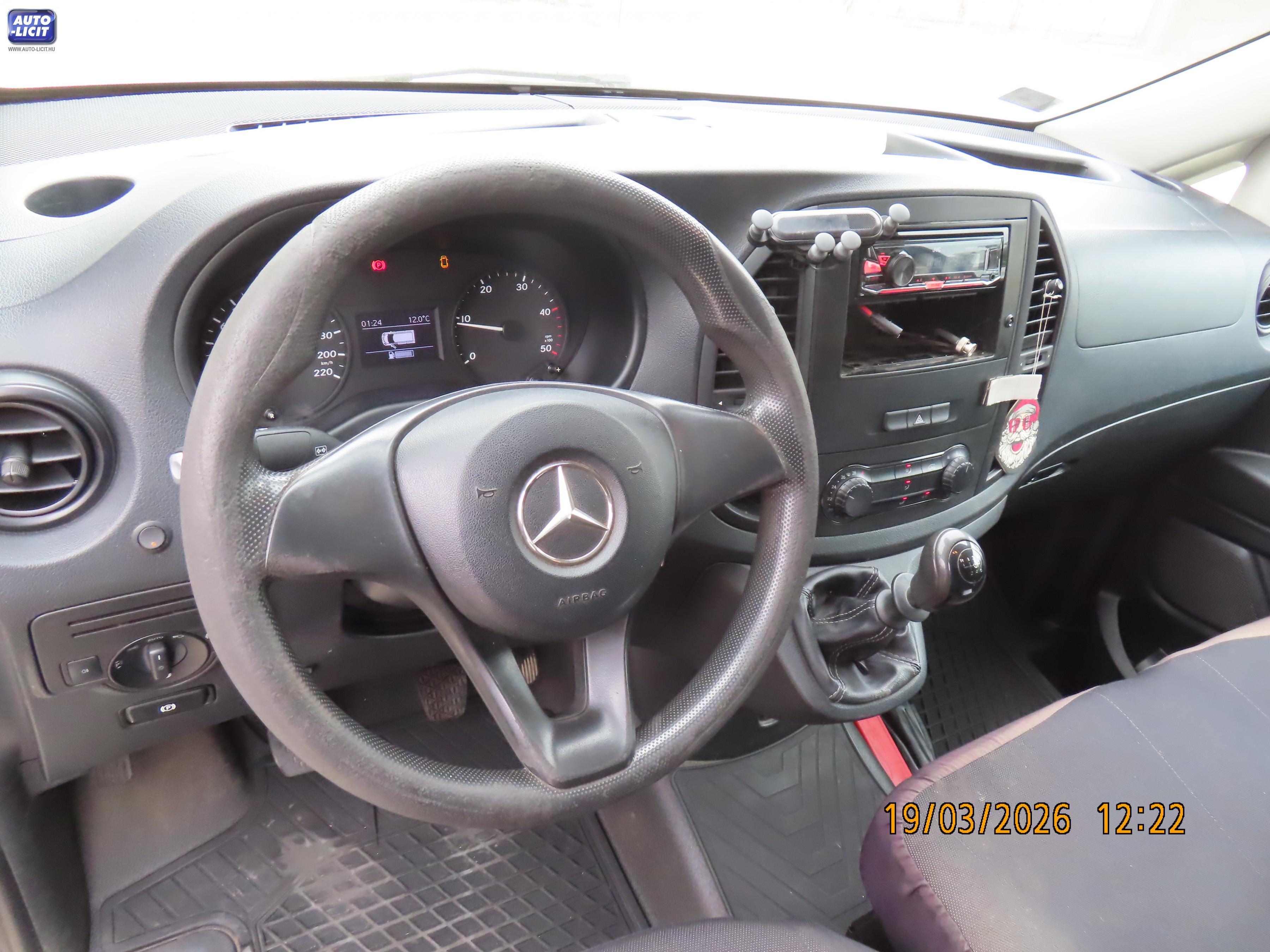 12V-os csatlakozó Acél keréktárcsák: 16'' Biztonsági öv kontroll (vezető oldal) Éberségfigyelo rendszer - ATTENTION ASSIST Elektromos ablakemelők elöl Elektromos ablakemelők komfortkapcsolóval felszerelve Fejtámlák elöl [2 db] Féklámpa: Adaptív [vészfékezéskor vészvillogó] Fékrendszer: blokkolásgátló fékrendszer [ABS] Fényezés: alapszín Fordulatszámmérő Garancia: 3 év km korlátozás nélkül Hátsó ajtó lemezelt Indításblokkoló Információs rendszer: szerviz-intervallum kijelző Járműstabilitás ellenőrzése: ESP [elektromos járműstabilizációs program] Kárpit: szövet Keréknyomás ellenőrző rendszer Kesztyűtartó: zárható Kipörgésgátló [ASR] Központi zár távirányítással Külso visszapillantó tükrök belülrol állíthatók Külső hőmérsékletmérő Légzsák a vezető-és utasoldalon Oldalsó fellépő Oldalsó tolóajtó [jobb oldali] Pótféklámpa [harmadik féklámpa] Pótkerék: pótkerék helyett abroncsjavító készlet Raktér oldalborítás Raktér válaszfal ablak nélkül Sebességváltómű: 6 fokozatú mechanikus Startasszisztens Szervokormánymű Színezett üvegek Ülések: állítható magasságú vezetőülés Világítás: nappali menetfény Audio rendszer elokészítés Kormánykerék: bőrkormány Légkondícionáló berendezés, félautomata Pótkulcs Raktér padlóburkolat: fa Ülések: első utasülés dupla Ultrahangos parkolásirányító hátul