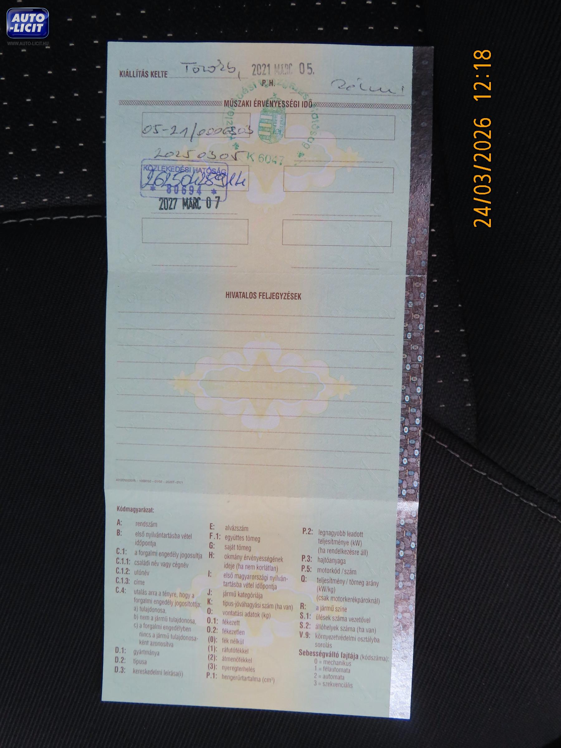 lásd megjegyzés (Első vészhárító jobb szélén kis karcok fénysérült bal szélén kis fénysérülés, jobb első ajtón apró fénysérülések, éle fénysérült, hátsó lökhárítón kis karcok, csomagtérajtón apró nyomás fénysérült, jobb oldali tükörburkolat karcos, jobb hátsó, jobb első felni horzsolt.) |