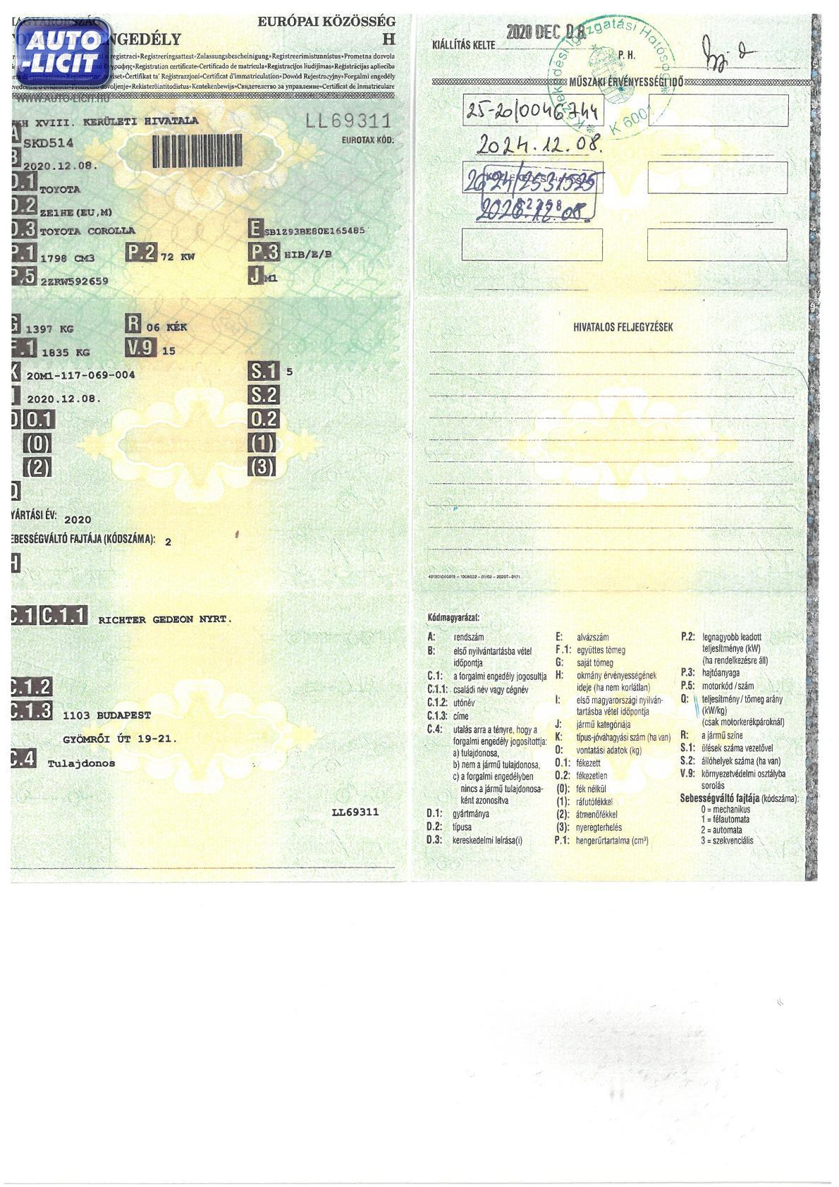 Első hazai forgalomba helyezés: |