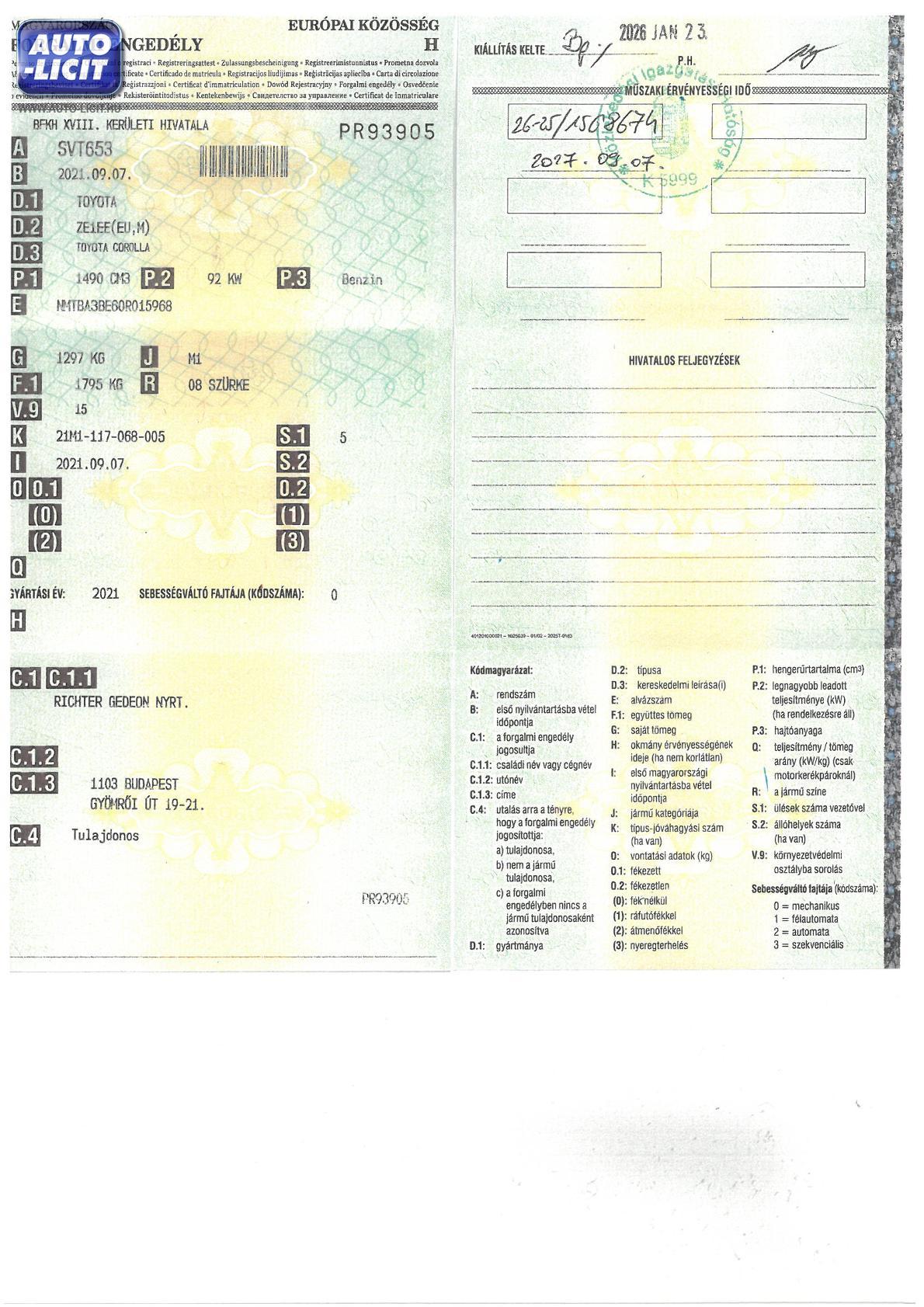 Első hazai forgalomba helyezés: |