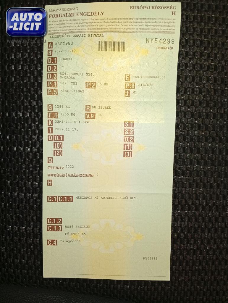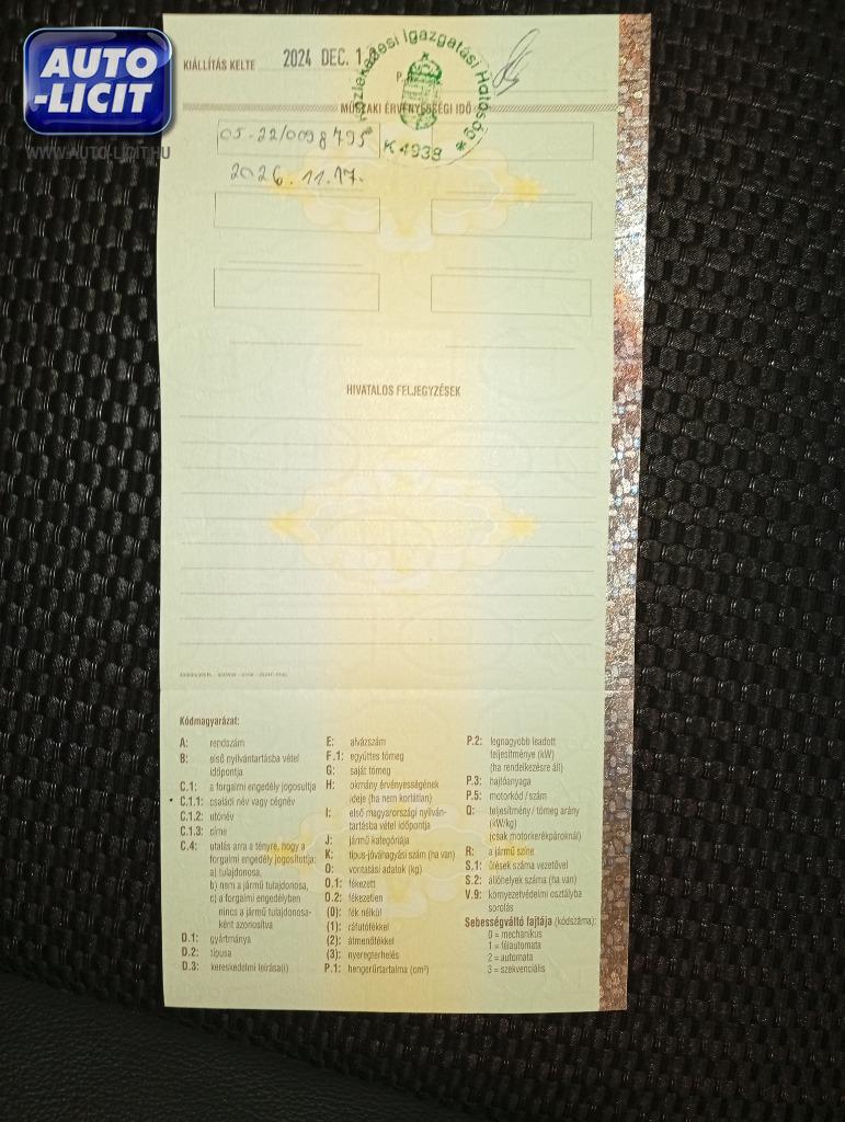 Műszaki érvényes: 2026.11.17 Első hazai forgalomba helyezés: 2022.11.17