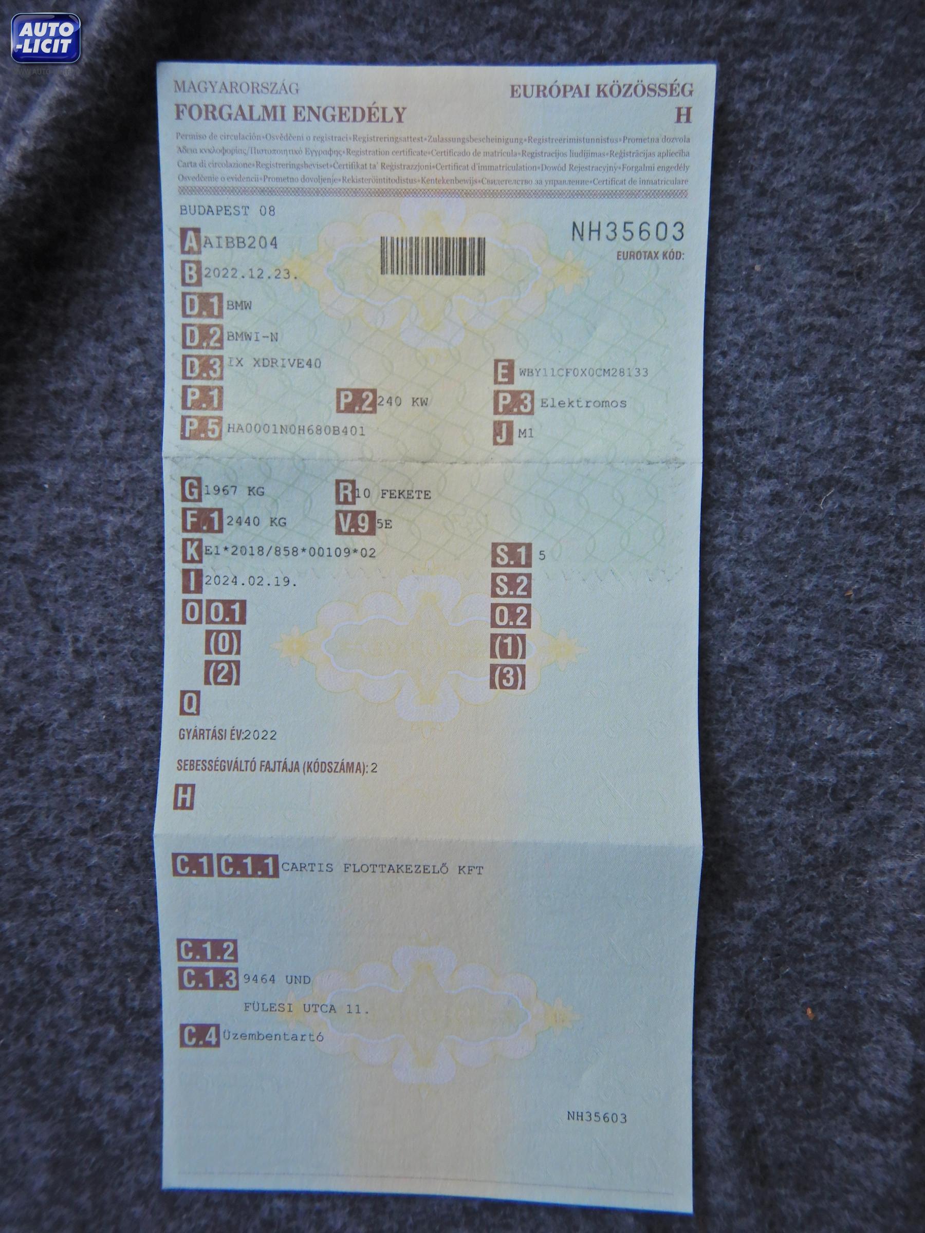 Első forgalomba helyezés: |