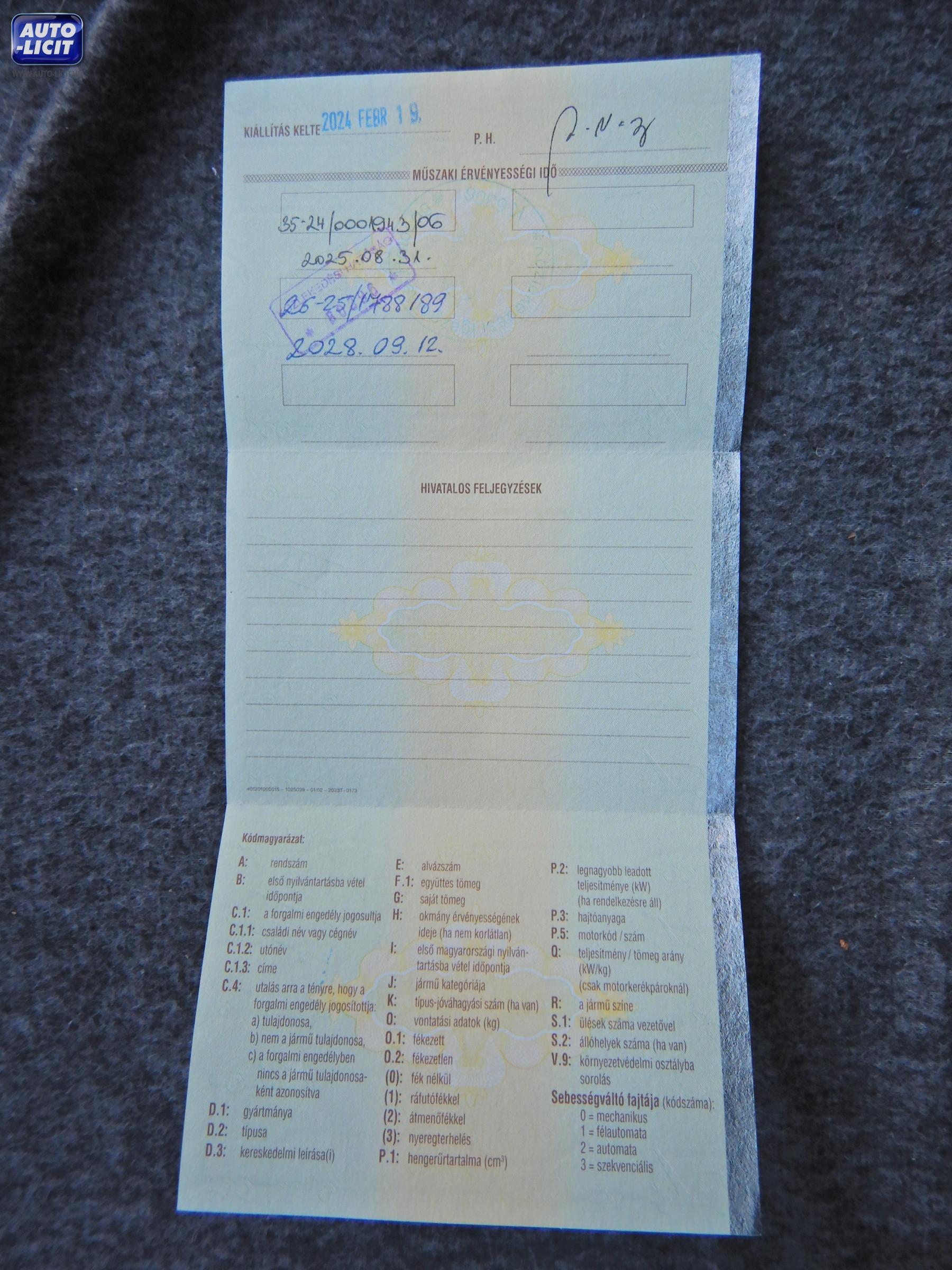 Első hazai forgalomba helyezés: |